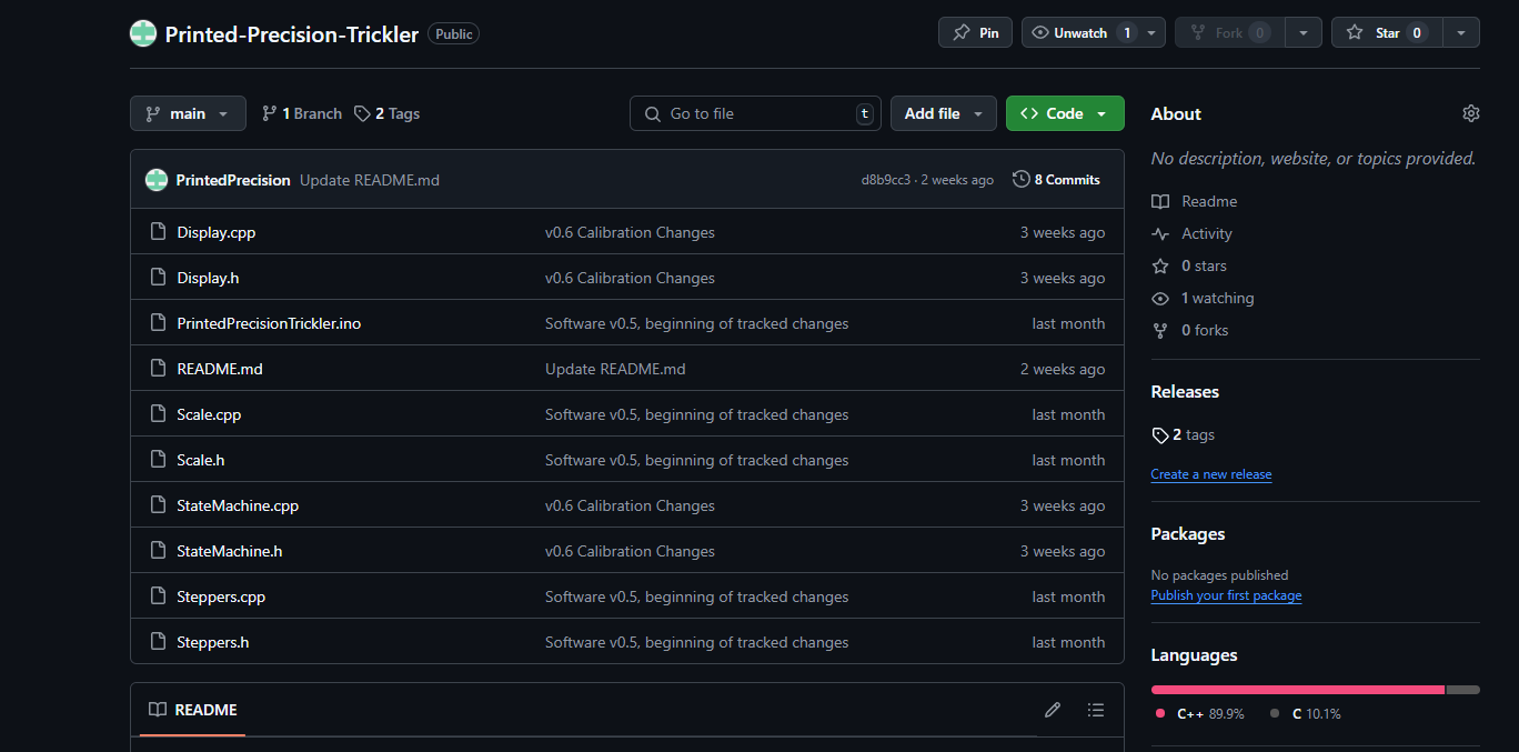 The full software for the Printed Precision Trickler system is freely available for anyone to examine, modify, and use however they like